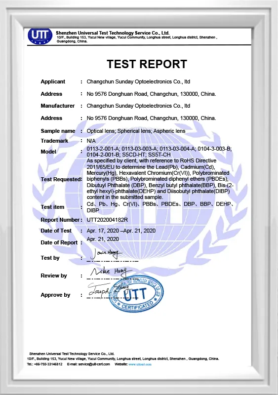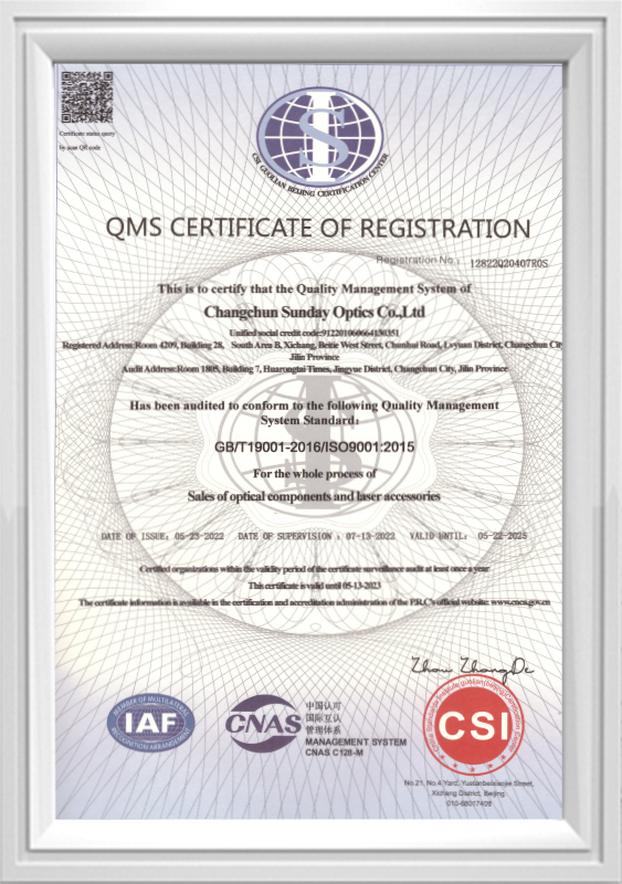Changchun Sunday Optics Co., Ltd., founded in 2013 and located in Changchun City—China’s renowned optical base—is a precision optical components manufacturer providing integrated capabilities in optical glass processing, coating, optical assembly, and optical design. Sunday Optics specializes in the production of spherical lenses, aspheric lenses, cylindrical lenses, optical prisms, high-precision windows, optical filters, optical mirrors, coatings, and laser lenses. The minimum lens size can reach 0.3 mm, while prism 90-degree angle tolerance can be controlled within 2″. With a strong focus on high-precision optics, surface roughness can be guaranteed down to 0.1 nm, meeting the stringent requirements of advanced optical applications.