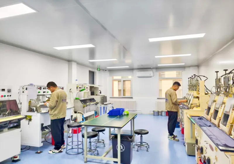 – In-house developed CNC grinding & polishing platforms that achieve λ/10 surface accuracy and 2″ angular tolerance on prisms.